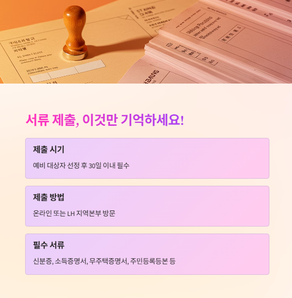 기본 서류 외에도 가족관계 증명서, 무주택 확인서류 등 필요한 경우 추가 서류가 요구될 수 있어요.